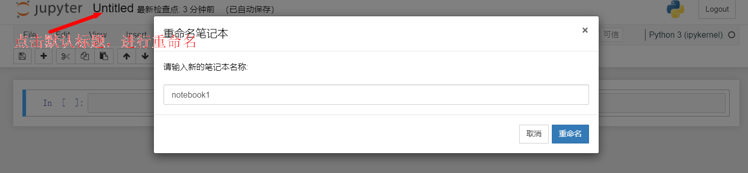 - Interrupt:中止代码的运行。当某个单元格中的代码正在运行时,该单元格前面显示为In[*]。有时由于代码错误或其他原因,该单元格长时间处于运行状态,此时我们可以通过Interrupt中止代码的运行。